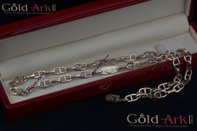 На фотографии Вы видите реплику золотой цепи Брака, изготовленную нашими мастерами. Оригинальное плетение цепи дает возможность купить красивое плетение в новом инновационном исполнении. Звено цепочки состоит из трех частей, в центре соединенных штифтом. Звенья двигаются на бочонке из белого золота, а основа звена из красного. Возможно, изготовить на заказ цепочку из белого, красного или лимонного цвета 585 или 750 пробы. Вес изделия зависит от длинны от 50 грамм до 80 грамм. Изготавливаем под данное изделие кресты копии бренда Барака со сходством до 99% с Вашими пожеланиями и параметрами. От Вас необходимо фотография креста и желаемый вес, стоимость изделия просчитывается индивидуально.