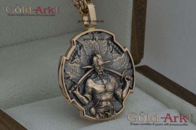 Двустороній золотий кулон Козак Характерник